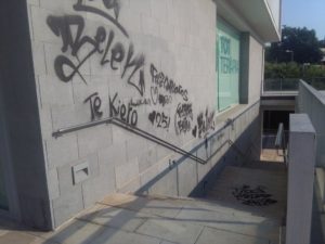 El trabajo que nos encargo nuestro cliente consistió en la eliminación de un grafiti pintado en un vinilo de un establecimiento situado en un centro comercial. El exterior de dicho establecimiento se decoró con un vinilo con el logo comercial, y la pintaba podía afectar negativamente a su imagen comercial, por lo que era imperativo eliminarlo lo antes posible.